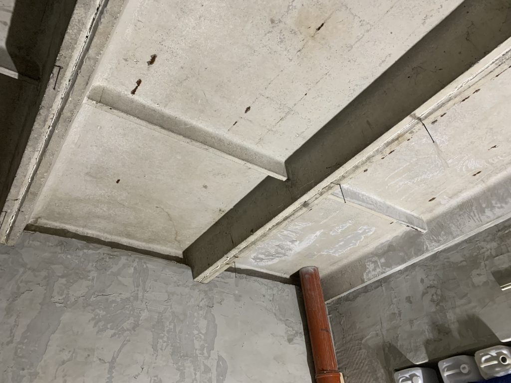 При подготовке подобного объекта к утеплению важно, чтобы потолок не был покрыт штукатуркой, так как при нанесении пены, она начинает отщелкиваться от поверхности бетона вместе с утеплителем. По этому потолок приходится предварительно зачищать. Ну и второй главный фактор – поверхность должна быть сухой.