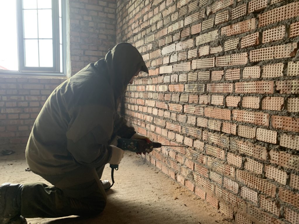 Перед утеплением, в стене пробуриваются тонкие отверстия диаметром 6-8 мм. В кирпичной стене, отверстия бурятся в шов. Это позволяет сохранить эстетику, если фасад сделан из красивого облицовочного кирпича.