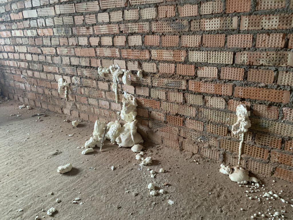 Так же ключевой разницей является то, что монтажная пена начинает вспениваться сразу при выходе из баллона. Если утеплять монтажной пеной пространство между стен, загоняя пену в пробуренные отверстия, то вспениваясь, она попросту образует пятаки вокруг отверстий, налипая на стены.